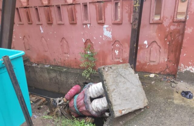 दरबान की प्रतिमा नाली में गिरी