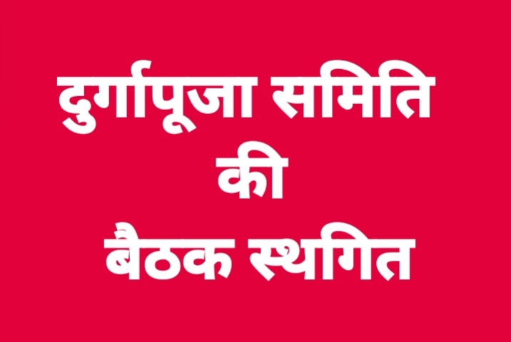 दुर्गापूजा समिति की बैठक गायत्री मंदिर में शाम 5 बजे रखा गया था, आज की बैठक को स्थागित किया गया है। दु:ख के साथ कहना पड़ रहा है कि दुर्गापूजा समिति के पूर्व उपाध्यक्ष संजय शर्मा (संजू महाराज) का निधन हो गया है। संजू शर्मा कल से लापता था, जिसका शव आज खडग़ांव के पास नदी में मिला है। दुर्गापूजा समिति के पूर्व उपाध्यक्ष संजू शर्मा का निधन होने के कारण आज होने वाला दुर्गापूजा समिति की बैठक को स्थागित किया गया है। दुर्गापूजा समिति की आवश्यक बैठक कल यानि 28 जुलाई 2025 को शाम 5 बजे गायत्री मंदिर में होगा।