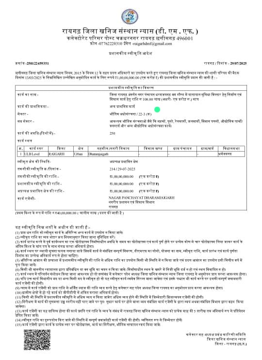 नगर पंचायत धरमजयगढ़ के विकास को एक नई दिशा और गति प्रदान करने हेतु डीएमएफ (जिला खनिज प्रतिष्ठान) मद से करोड़ों रुपए की स्वीकृति प्राप्त हुई है। यह स्वीकृति भाजपा जिला अध्यक्ष अरुण धर दीवान के अथक प्रयासों, वित्त मंत्री ओपी चौधरी एवं सांसद राधेश्याम राठिया की सहमति और संकल्पशील नेतृत्व का प्रतिफल है। भाजपा सरकार के गठन के पश्चात् निरंतर विकास कार्यों को सर्वोच्च प्राथमिकता दी जा रही है। हाल ही में जनपद पंचायत के अंतर्गत आने वाले कुछ ग्रामों की सड़कों के निर्माण हेतु भी डीएमएफ मद से भारी भरकम राशि स्वीकृत की गई थी। जिसका कार्य शीघ्र प्रारंभ होने वाला है।अब नगर पंचायत को पहली बार डीएमएफ मद से प्राप्त हुई यह राशि नगर के समग्र और स्थायी विकास का आधार बनेगी। वहीं स्वीकृति प्राप्त होते ही नगर में विकास कार्यों की एक नई लहर दौड़ गई है। नगर पंचायत अध्यक्ष अनिल सरकार ने इस महत्वपूर्ण उपलब्धि पर प्रसन्नता व्यक्त करते हुए भाजपा जिला अध्यक्ष अरुण धर दीवान, वित्त मंत्री ओपी चौधरी एवं सांसद राधेश्याम राठिया के प्रति आभार व्यक्त किया है। उन्होंने स्पष्ट किया कि नगर के चतुर्दिक विकास के लिए हरसंभव प्रयास किए जाएंगे और किसी भी स्तर पर कोई कोर-कसर नहीं छोड़ी जाएगी। नगरवासियों को अब शीघ्र ही विकास की प्रत्यक्ष अनुभूति होगी। अब नगर पंचायत धरमजयगढ़ अब एक नवीन युग की ओर अग्रसर है। जहां विकास होगा सशक्त, समावेशी और सतत।