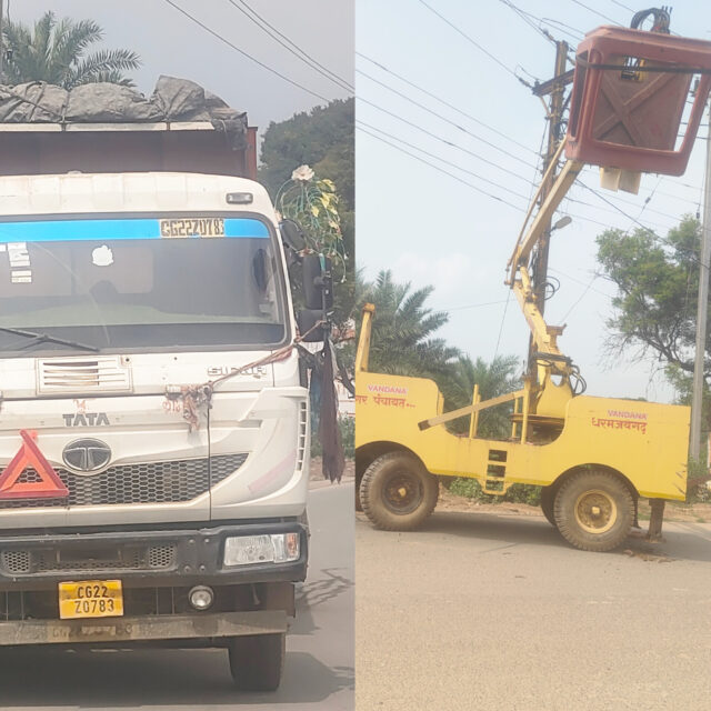 नगर की सड़कों पर बेलगाम दौड़ रहे ओवर लोड फ्लाईएश वाहनों के कारण आये दिन दुघर्टना हो रहे हंै। स्थानीय प्रशासन बेलगाम ओवर लोड फ्लाईएश वाहनों पर किसी भी प्रकार की कोई कार्यवाही नहीं कर रहे हैं। जिसका नतीजा है कि आये दिन ओवरलोड फ्लाईएश ट्रकें दुघर्टना को अंजाम दे रहे हैं। ऐसा ही एक घटना आज नगर में देखने को मिला। फ्लाईएश खाली कर रायगढ़ की ओर जा रहे ट्रक क्रमांक सीजी 22 जेड 0783 ने नगर पंचायत का लिफ्टर मशीन से नगर की लाइट सुधार रहे गाड़ी को ठोकर मार दिया, ठोकर इतना जोरदार था की लाईट सुधार रहे नगर पंचायत का कर्मचारी लिफ्टर मशीन से गिर गया, ऊंचाई से गिरने से नगर पंचायत कर्मचारी की जान तो बाल-बाल बच गया, लेकिन अस्पताल में इलाज चल रहा है। बताया जा रहा है कि वाहन की ठोकर से कर्मचारी प्रधान को अंदुरूणी चोंट आई है।