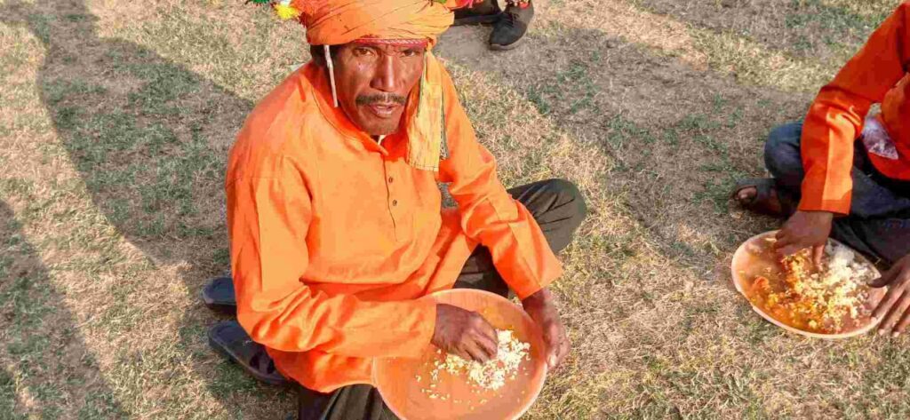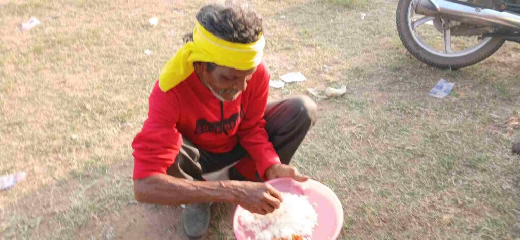कार्यक्रम स्थल पर भोजन वितरण के दौरान आदिवासियों को केवल भात परोसा गया। लेकिन दाल, चटनी या अन्य किसी भी व्यंजन का इंतजाम नहीं था। इस अव्यवस्था से कई लोग बेहद आक्रोशित दिखे। कुछ लोगों ने तो प्लेट में मिला भात वापस भगोने में डाल दिया, वहीं कई आदिवासी भोजन के अभाव में कार्यक्रम स्थल के बाहर से खाना खरीदने को मजबूर हो गए।