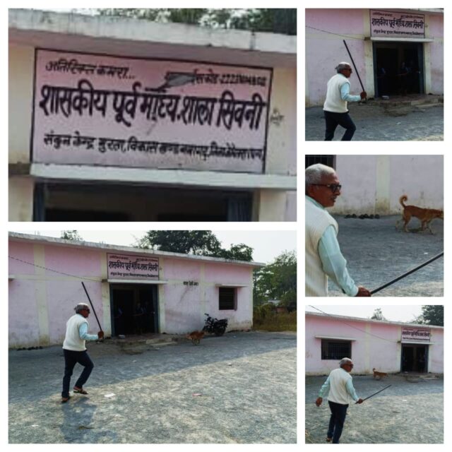 छत्तीसगढ़ शासन के शिक्षा मंत्री के द्वारा जिस तरीके से शिक्षकों को कुत्ते भगाने की जो ड्यूटी दी गई है वह काफी शर्मिंदगी वाली बात है। ऐसा ही एक मामला छत्तीसगढ़ के बेमेतरा जिला के नवागढ़ विकासखंड क्षेत्र अंतर्गत आने वाले ग्राम सिवनी के प्राथमिक पाठशाला के शिक्षक की एक तस्वीर सोशल मीडिया पर जमकर वायरल हो रहा है जिसमें शिक्षक दिखाई दे रहे हैं एक डंडे लेकर के कुत्ते को भागते हुए जिसे देखकर सोशल मीडिया पर लोग अपनी नजर नहीं हटा पा रहे हैं और काफी पेट पड़कर हंसते नजर आ रहे हैं। आओ स्कूल चले… बच्चों को पढाने और कुत्ते को भगाने… क्या करेंगे सरकारी सिस्टम से त्रस्त शिक्षक अपनी कामकाज को छोड़कर कुत्ते भगाने की ड्यूटी बखूबी से निर्वहन कर रहे हैं जिसकी सच्ची तस्वीर सोशल मीडिया पर जमकर वायरल हो रहा है आप भी देख कर पेट पड़कर हसेंगे और ठहाके के साथ हसेंगे।