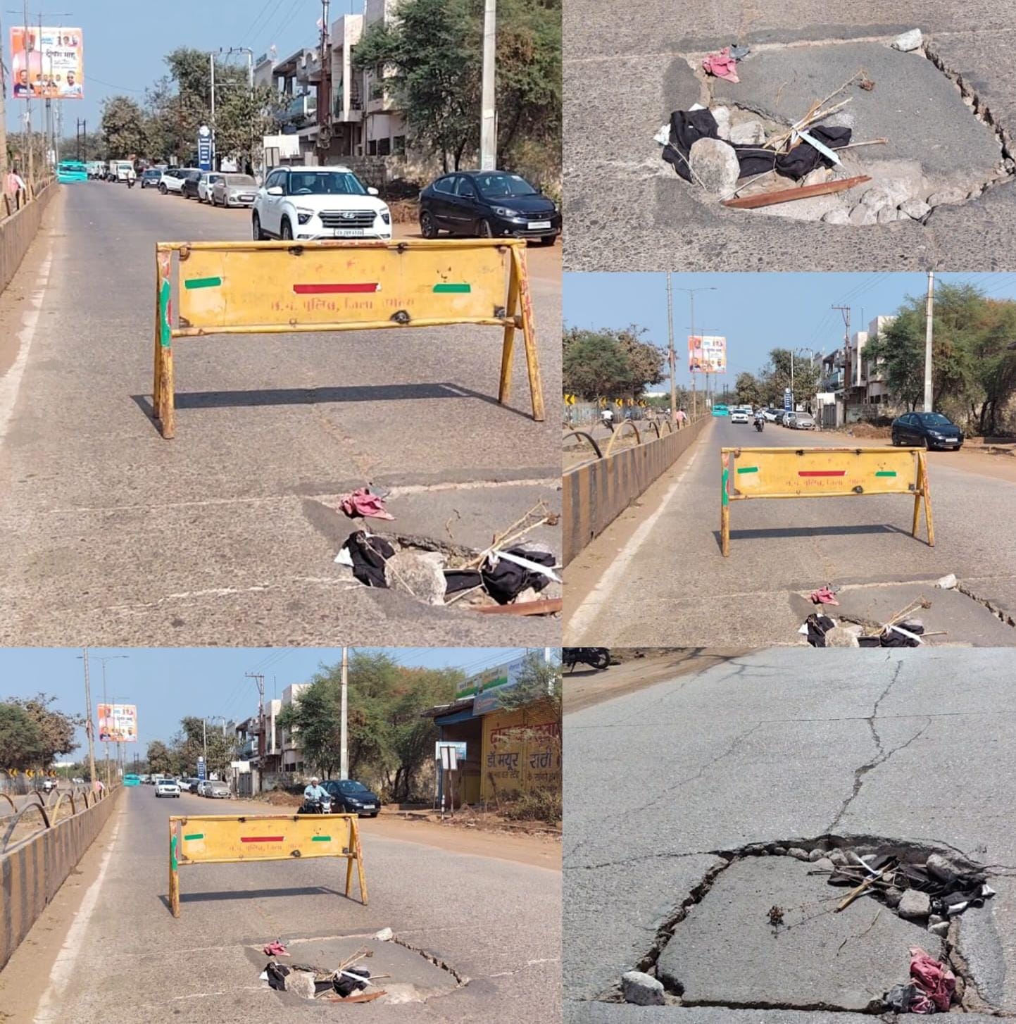 बेमेतरा जिले में यातायात जागरूकता को लेकर पुलिस अधिक्षक लगातार आम सड़कों पर जागरूकता हेतु सड़कों पर पुलिस के जवाब दार कर्मचारी सड़क से लेकर गांवों के हाट बाजारों व जिले के अंतिम छोर पर बसे लोगों तक सड़क सुरक्षा की जानकारी पहुंचाने का प्रयास कर रहे हैं वहीं किन्तु दूसरी ओर प्रशासनिक पदों पर बैठे जिम्मेदार लोगों की कारनामे की हकीकत तस्वीर को देखकर आपके भी रोंगटे खड़े हो जाएंगे आपको बता दूं कि राज्य मार्ग 30 का यह सफर जो राहगीरों के लिए मौत की सफर से कम नहीं है आपको बता दूं कि बेमेतरा के मुख्य मार्ग नंदवाना आरा मील के ठीक सामने और किंग महल के मध्यम सड़क पर गड्डे का मंजर देखने को मिला इस बात को हमारे संवाददाता ने बड़ी ही प्रमुखता से प्रकाशित भी किया किंतु फिर भी सुधार करने के बजाय सिर्फ एक ब्रेरीगेट लगाकर हादसे से बचाना चाहते हैं और आ बैल मुझे मार वाली कहावत को चरितार्थ कर रहा है मानो रफ्तार से और बड़ी हादसों को आमंत्रित करा रहे हैं। यह एक बड़ा सवाल है एक ओर पब्लिक वर्क डिपार्टमेंट पीडब्ल्यूडी बेमेतरा की भ्रष्टाचार की खुली पोल में जवाबदार लोगों की हकिकत उजागर तो हो ही गया है आपको बतलाने की जरूरत ही नहीं है किंतु बड़ी दुर्भाग्य का विषय है की सैकड़ों, हजारों राहगीरों के जीवन के साथ खिलवाड़ करने में कोई कसर नहीं छोड़ी है। सुधार करने में ना जाने और कितने वक्त लगाएंगे यह बड़ी चिंता का विषय है। जवाबदार लोगों को अपनी जिम्मेदारी से कोई लेना-देना नही, आवागमन करने वाले लोग हादसे का शिकार हो जायेगा तब भी इससे भी कोई ताल्लुकात नहीं है। ऐसे बेपरवाह जिम्मेदार अफसर पर त्वरित कानूनी कार्यवाही होनी चाहिए ताकि आने वाले हादसों से भी बचा जा सके और बड़े भ्रष्टाचार से बचाया जा सके बेमेतरा की गौरव की रक्षा और आर्थिक सुरक्षा की जिम्मेदारी आम नागरिकों की होनी चाहिए ऐसे जिम्मेदार अफसरों का जिला मुख्यालय में रहना भय भ्रष्टाचार को बढ़ावा दे रही है।