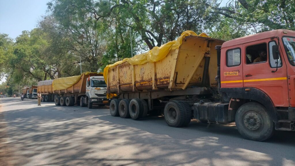 धरमजयगढ़ से गुजरने वाली भारतमाला सड़क के लिए हर दिन सैकड़ों वाहन फ्लाईएश परिवाहन कर रहे हैं। फ्लाईएश वाहन सड़कों पर ऐसे चलते हंै जैसे उनको शासन-प्रशासन खुली छूट दे दिया मनमानी करने के लिए। फ्लाईएश परिवाहन कर रहे हाईवा चालकों की मनमानी की खबर हर दिन समाचार पत्रों की सुर्खियां बन रही है। जिला प्रशासन ने समाचार को संज्ञान में लेते हुए ओवरलोड, तेज रफ्तार एवं सड़क पर फ्लाईएश गिराते हुए आने वाले वाहनों पर कार्यवाही करने का निर्देश जारी किया है। धरमजयगढ़ पुलिस आज लापरवाही एवं बेलगाम होकर फ्लाईएश ले जाने वाले वाहनों पर चालानी कार्यवाही किया है।